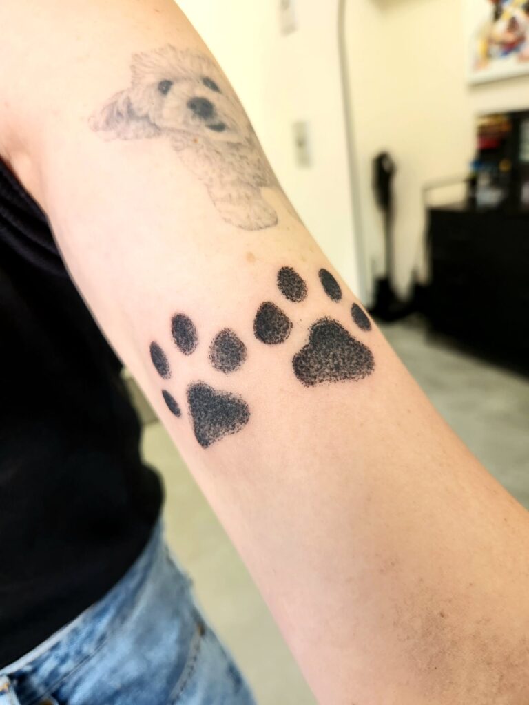 実寸サイズの肉球タトゥーを2つ揃いで施術致しました。 4ワンちゃんと暮らす飼い主さまにとって、愛犬は大切な家族🐾