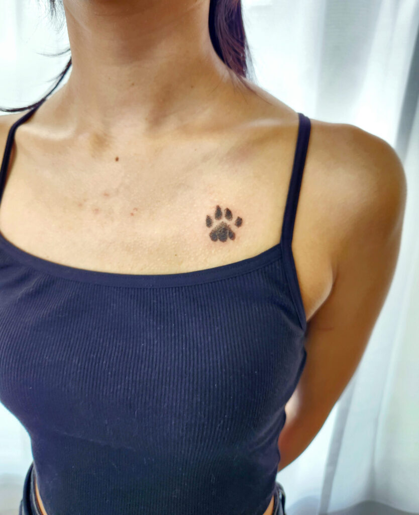 ファーストタトゥーのお客様。 お誕生日に、愛猫ちゃんの肉球タトゥーをデコルテに🐾 「心臓を捧げたい」と思うほど、ずっと一緒に育った愛猫ちゃんへの 深く温かい愛情を感じる施術でした。